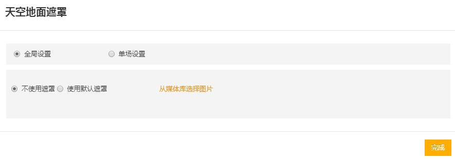 遮罩:遮罩分为“天空遮罩”和“地面遮罩”,天空遮罩显示在场景的顶部,地面遮罩显示在场景的底部。(默认遮罩图为720云图logo,也可以自定义图片)